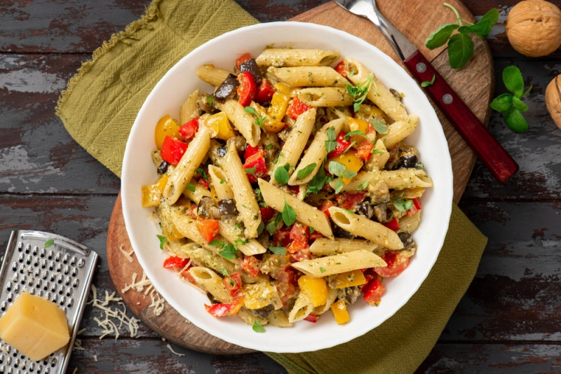 - Mélangez les pâtes refroidies avec les légumes grillés.