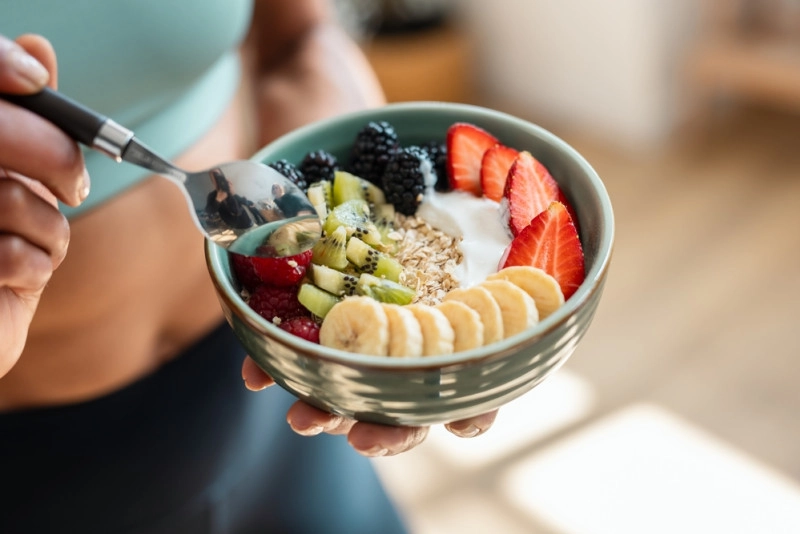 Un fruit en accompagnement d’un yaourt nature riche en protéines ou d’un petit‑déjeuner équilibré (flocons d’avoine + protéines + graines) ralentit l’absorption du sucre et augmente la satiété.