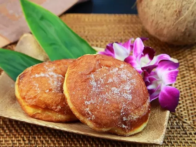 La malasada est un beignet original du Portugal, popularisé à Hawaï par les immigrants au XIXe siècle. Contrairement aux donuts classiques, elle n'a pas de trou au centre et se caractérise par une pâte souple, légèrement briochée, frite puis roulée dans le sucre, offrant une texture aérienne et moelleuse.