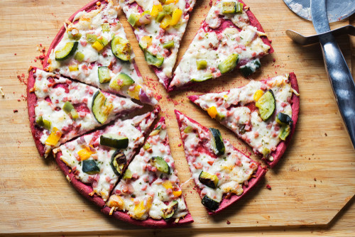 Cette pizza en croûte de betterave s’accompagne merveilleusement bien de :